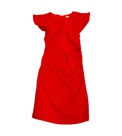 Red Flutter Cap Sleeve, Ruched Dress