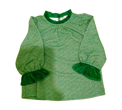 Green Ruffle Detail Textured And Speckled Knit Top