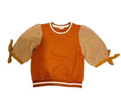 Camel Color Block Textured Knit Bow Tie Sleeve Top