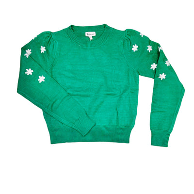 Rosemary Green Sweater with Flower Sleeves