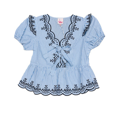 Blue Stripe/Navy Embroidered Bow Tie Top
