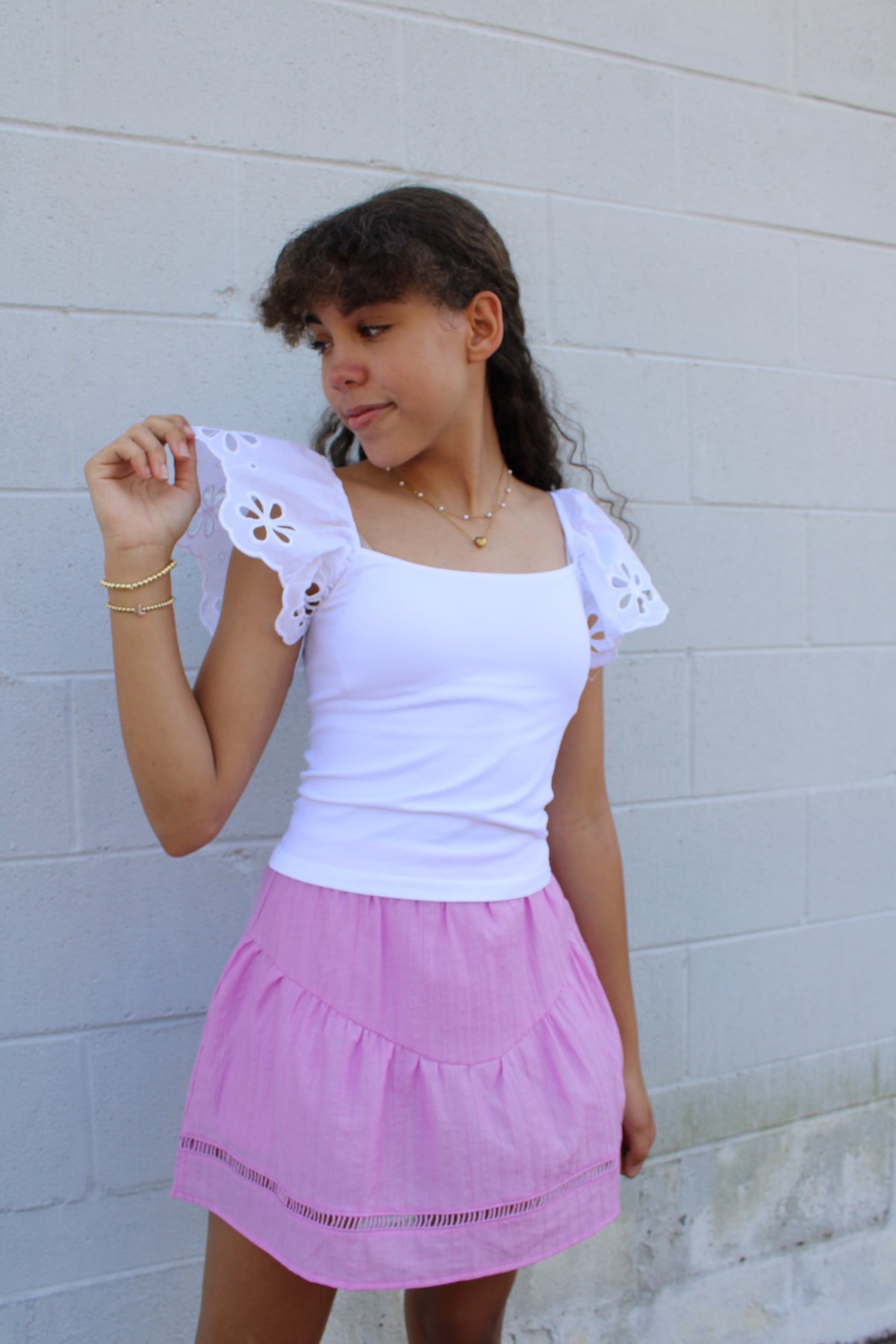 Regular price $34.00 Sale price $25.16 Save $8.84• Crisp white eyelet fabric with delicate cutout details for a fresh, feminine look
